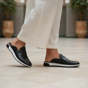 Sa forme ouverte à l’arrière permet un enfilage facile et rapide, tandis que sa semelle légère et ergonomique assure un confort optimal tout au long de la journée. Le design épuré avec bande supérieure apporte une touche chic, parfaite pour les tenues casual comme semi-habillées.